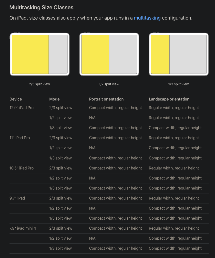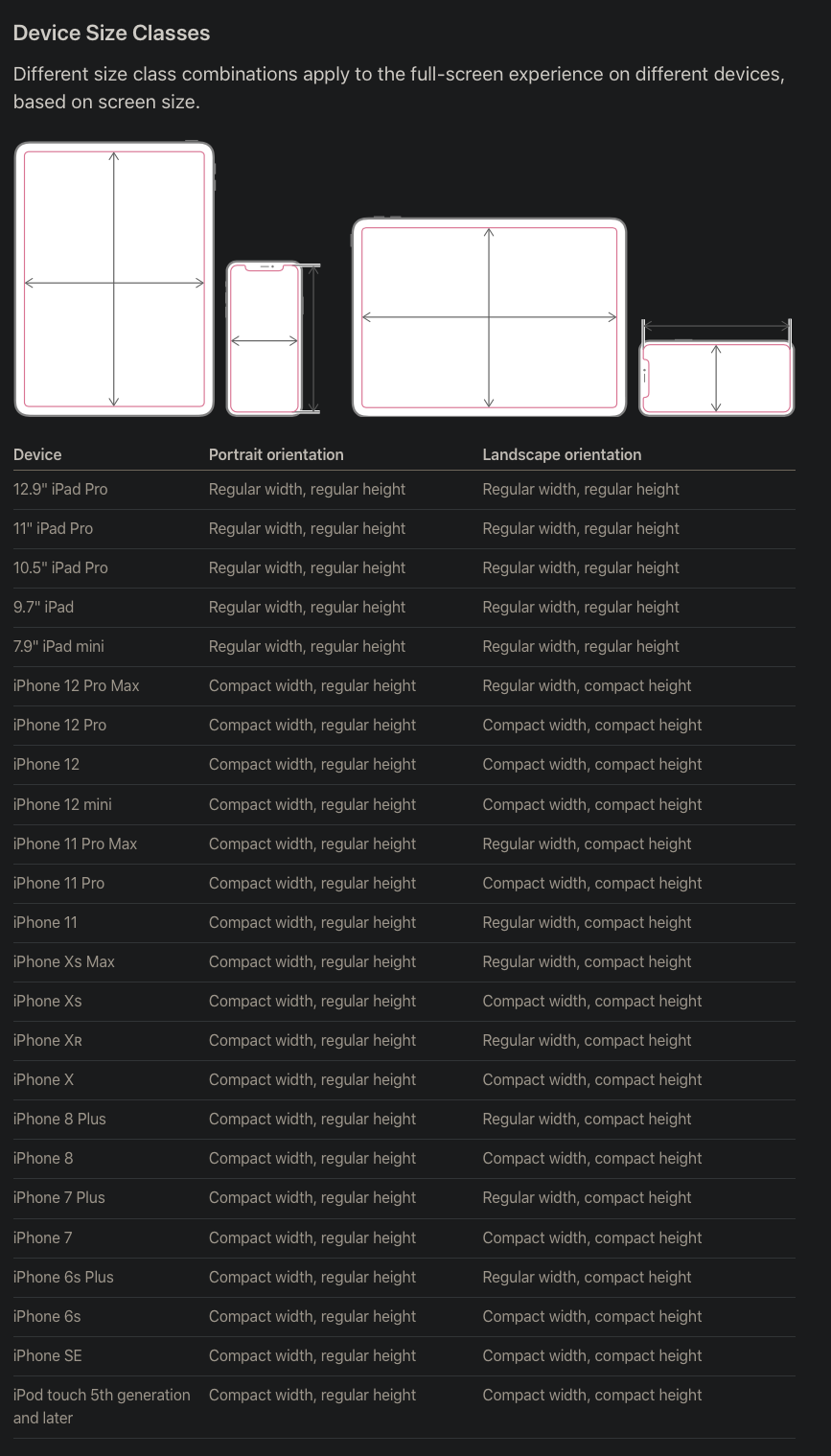 - 애플은 화면 너비나 높이에 따라 Compact(좁은) / Regular(넓은) class를 구분했습니다.